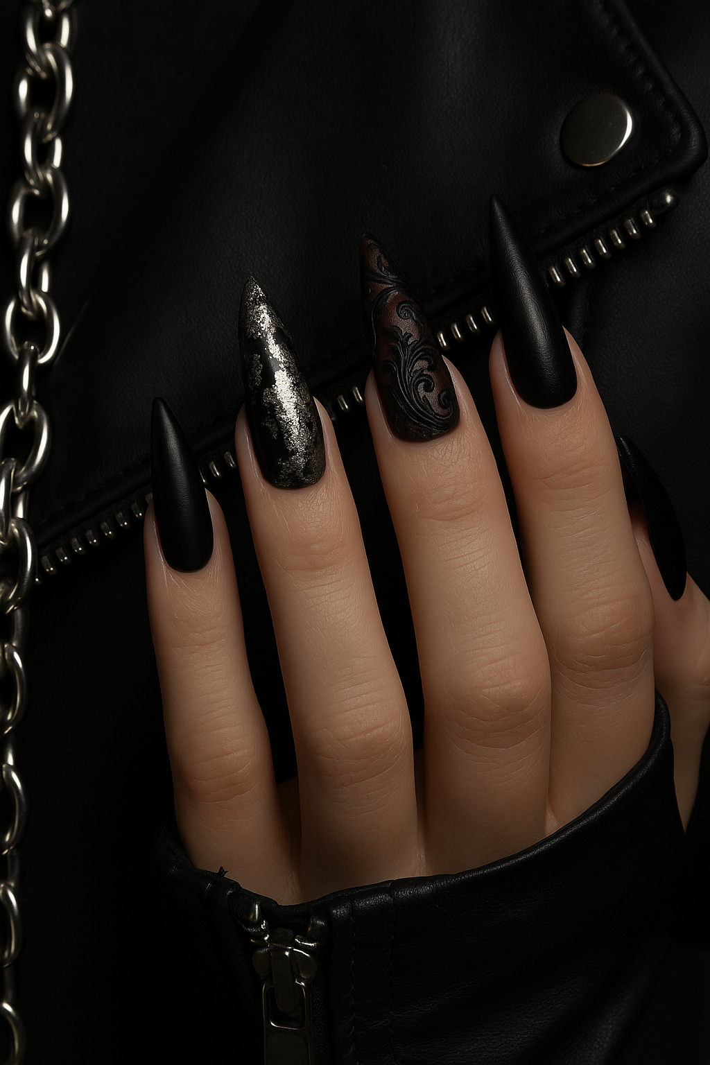The Dark & Edgy Collection is where metallic foils meet midnight chrome, and every detail drips with drama. Designed for the ones who crave bold contrasts and a little chaos, these sets channel high-fashion attitude and late-night confidence.
