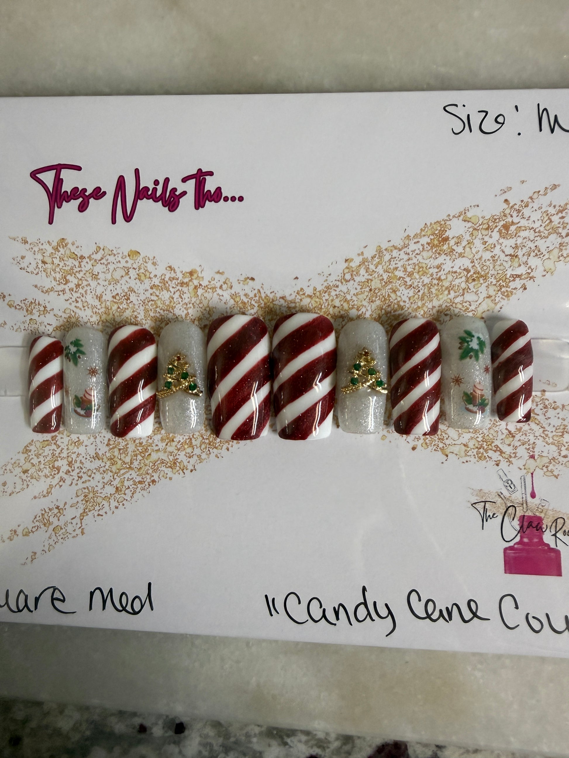 Candy Cane Couture is serving full Holiday It-Girl energy — bold red-and-white candy cane stripes, silver shimmer accents, and adorable mini Christmas tree details that look straight out of a luxe holiday photo shoot.